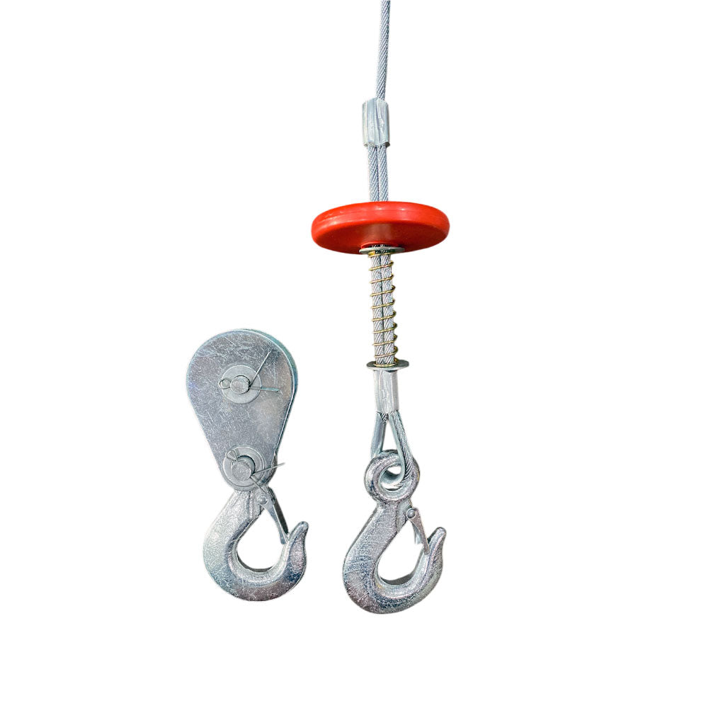 Con el gancho y el bloque de poleas de acero forjado de alta resistencia, la fuerza de elevación se puede duplicar.